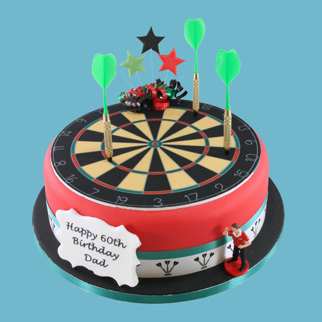 Celebrate any occasion with a fun and unique Dartboard Cake designed especially for darts enthusiasts. This round cake features a realistic dartboard design on top that perfectly captures the look of a traditional board. Every section, number, and colour is carefully crafted to create an eye-catching and authentic appearance. The detailed design makes it an exciting centrepiece for birthdays, competitions, or social gatherings where darts play a special role.