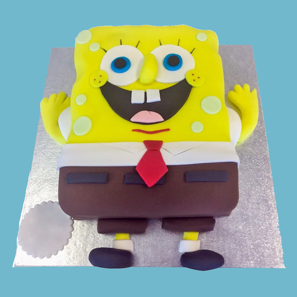 The Spongebob Cake brings the cheerful and quirky personality of Spongebob Squarepants straight to your celebration table. Shaped like the full body of the iconic cartoon character, this cake makes a bold and joyful statement. The design includes his bright yellow square body, complete with the distinctive light green sponge holes that fans instantly recognise. His large blue eyes sit wide apart, filled with energy and excitement, while his nose sticks out just enough to capture his signature look. His wide smile stretches across his face, showing his buck teeth and playful expression that children and adults adore.